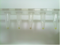 2) 離心,使溶液聚集在管底部。